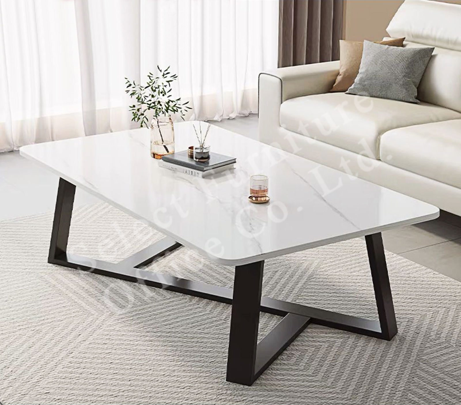 雲石紋仿石面長方形茶几