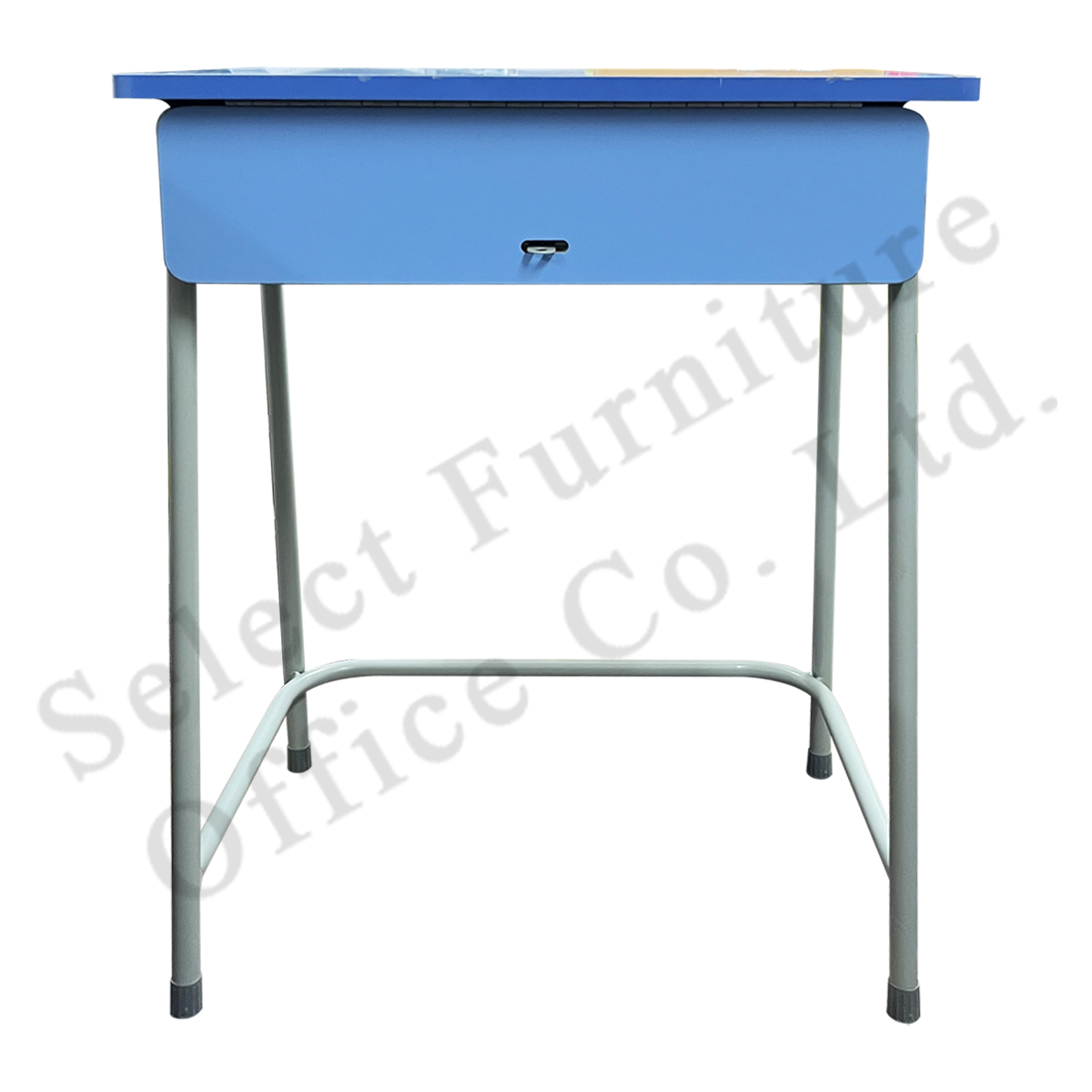 尺 寸:600W x 400D x 750Hmm 飾 面:M3292淺藍防火膠板,封1mm厚膠邊 柜 桶:普通標準型 反門方向:上揭式 (連不銹鋼鎖扣) 檯 腳:1.6mm 通厚材料,灰色焗漆,配灰色腳塞